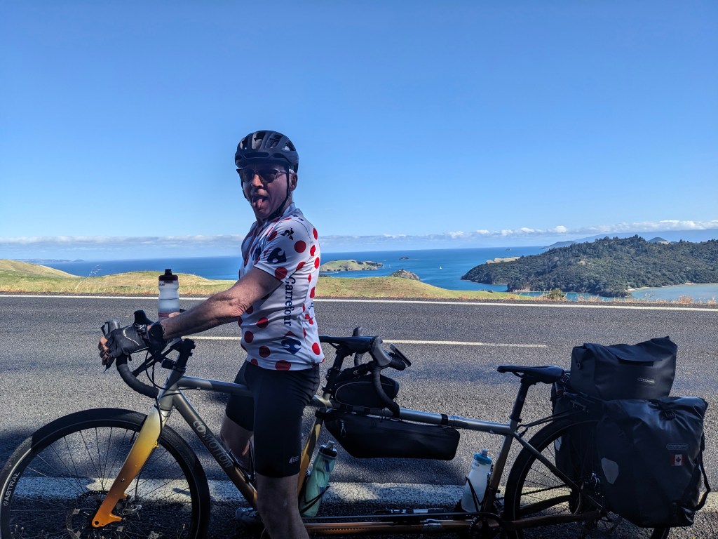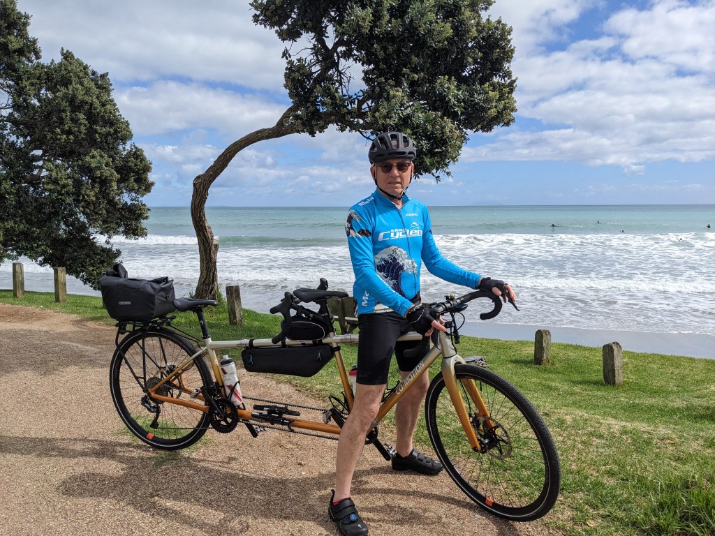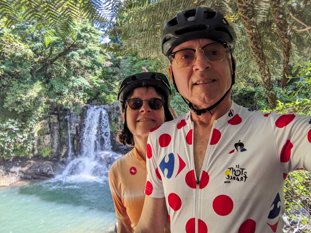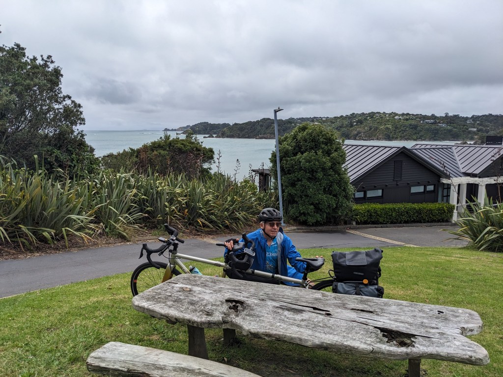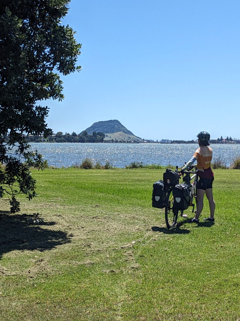 Our ride to Rotorua was a longish one at 80 kms with some climbing and a bush bike path, to stay off the highway as much as possible. We started with a beautiful and quick 16 km down the beach road out of Mt. Maunganui to Papamoa which was flat and quiet. At the end of that we joined onto a separate bike path along the highway to Paengaroa followed by a small alternate road where we only encountered a few other vehicles. Despite a few hard climbs it was a beautiful ride through here. Eventually the road ended and we entered a reserve area with a bike trail. It wasn’t exactly ideal for our bike as it was narrow, gravel and jungley but we got through it anyway without walking. Eventually we did have to get on the highway for the last 20 kms and mostly the shoulders were decent and traffic was not too bad. We were expecting to get rained on but it turned out just fine weather wise. We had been warned that the sulphur smell in Rotorua was overpowering but fortunately we were a little way from the most active geothermal sites so not too bothered by it. We stayed in an older motel along a long road with many similar motels.