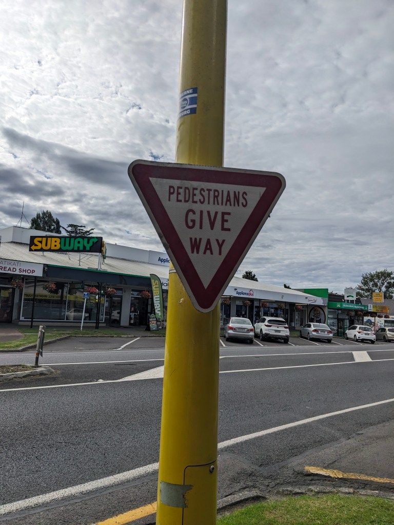 Just an aside here, something we’ve noticed in New Zealand is that pedestrians aren’t given priority over cars. On this long four lane road that we were staying on in Rotorua, about 2 kms or so, there are no crosswalks, you must jay walk. When you get to a crossing you do not have any priority, you go when it’s clear, and you must look in all directions including the cars turning from both directions. There are crossings that are just “pseudo cross walks” that say Pedestrians Give Way. In the very commercial areas of the cities there are crosswalks at the major intersections but only there. I think it’s much worse even than southern Europe, the drivers rarely stop for you even if you are already in the crossing. You have to stay alert, no looking at your phone or a map.