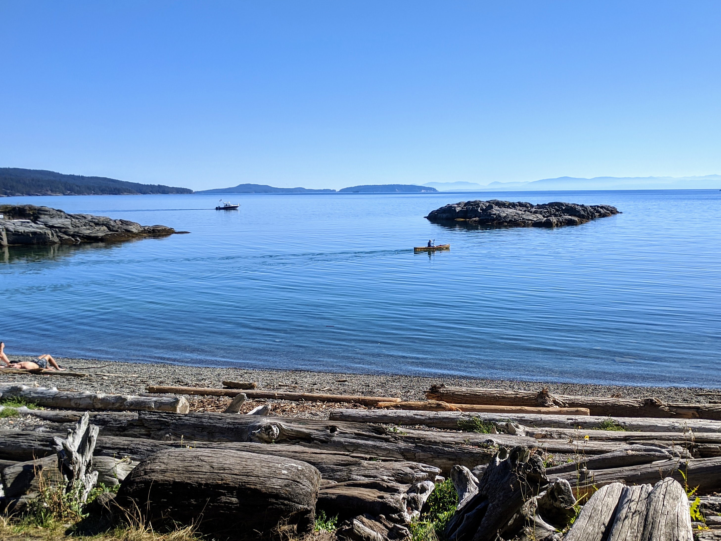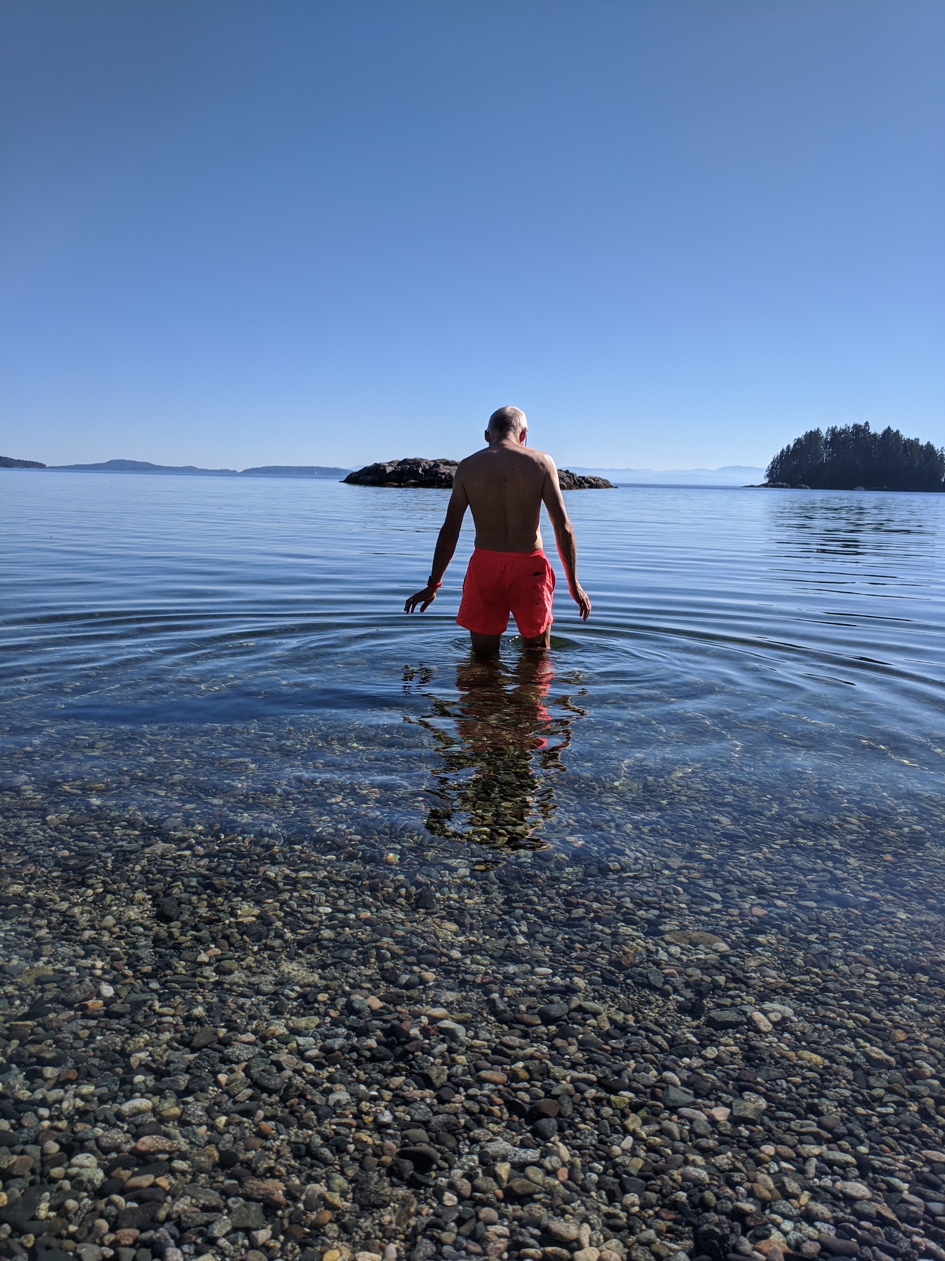 In the afternoon we took a short ride over to a Francis Point provincial park where we went on a short hike along an oceanside trail that gives you views of Texada Island and Malaspina Strait, very beautiful. We didn’t manage to see any whales, dolphins or seals though just some ducks and a heron. We finished off the day with another dip in the ocean at Baker Beach and another supper on the hotel terrace enjoying the view at sunset of Pender Harbour.