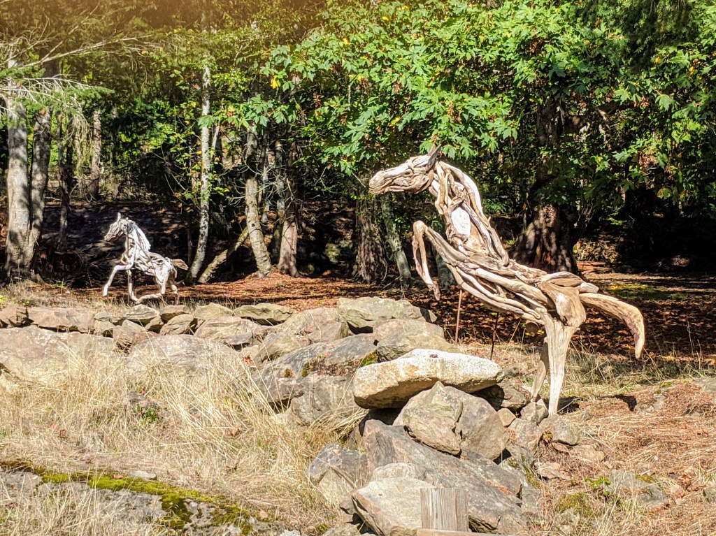 Love the driftwood sculptures and the memorial garden! What a different trip than usual but beautiful scenery even with the rain. Thanks for sharing.