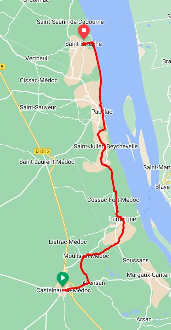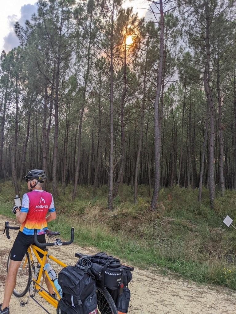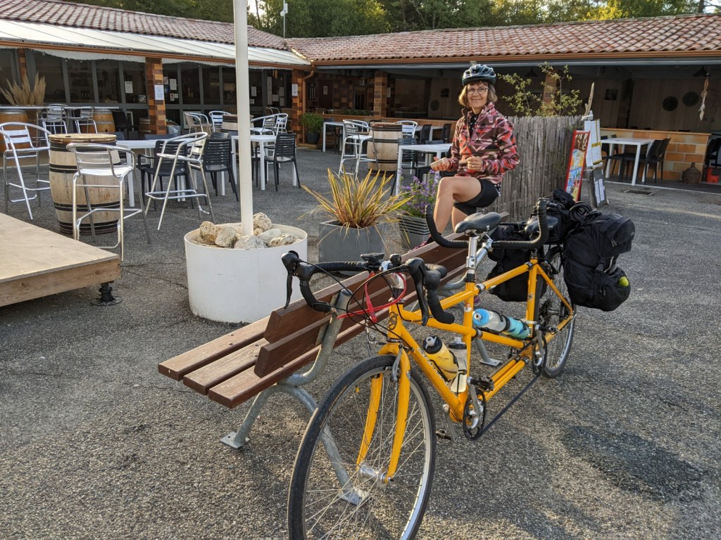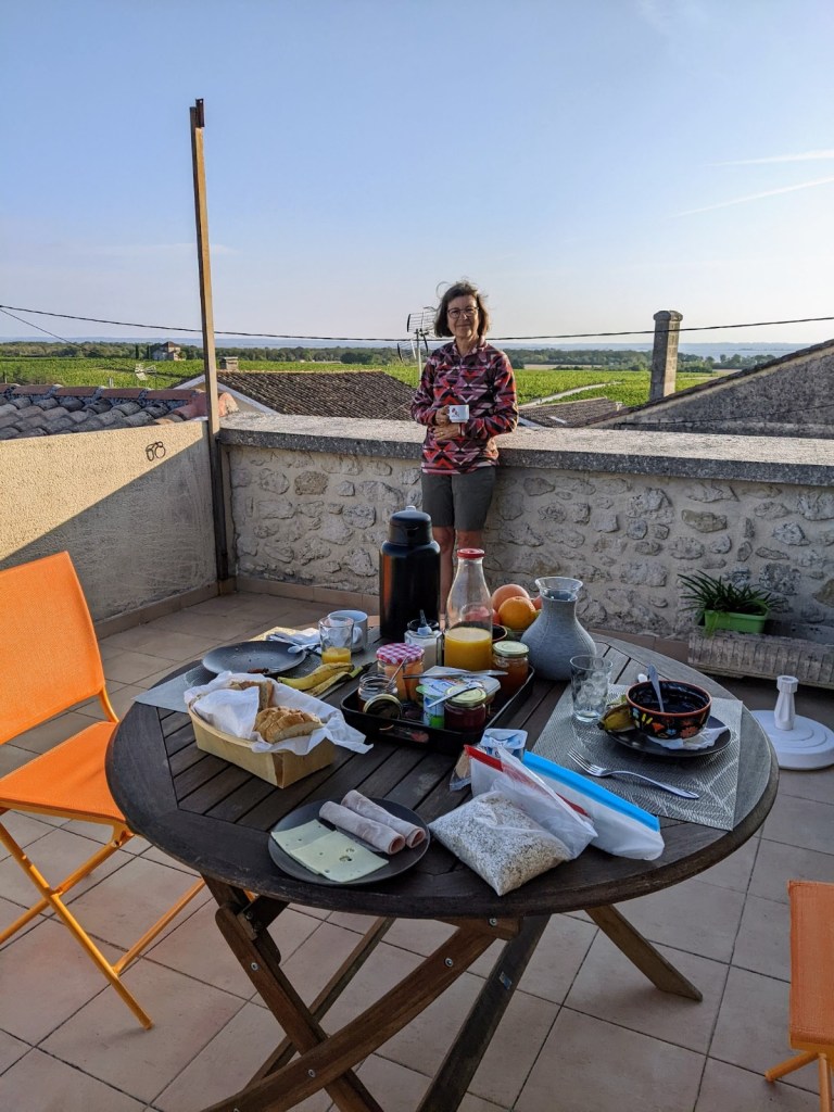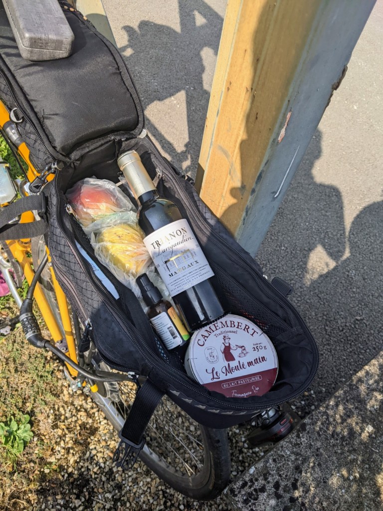 Although we have enjoyed this area of the Médoc peninsula very much it isn’t quite geared for travel by bicycle. It is a predominantly rural area so there are less businesses catering to tourists such as restaurants and hotels. We have struggled a bit with getting evening meals so have mostly resorted to buying prepared meals and heating them up where we are staying, and having a nice bottle of the local wine of course. Our hosts Eva and Bernard are very friendly and encouraged us to use their kitchen to prepare our food, so not much trouble getting nourished.