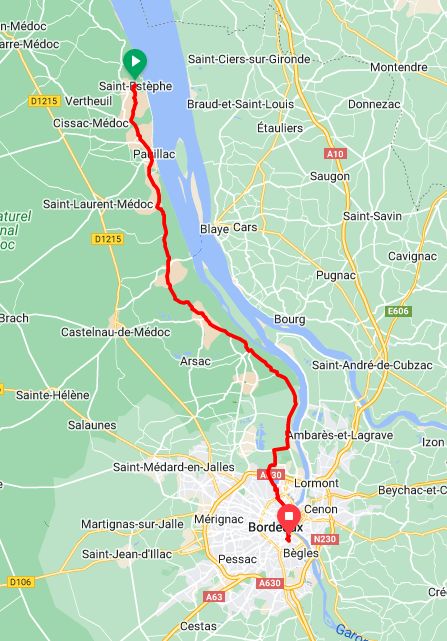 The ride to Saint-Estèphe was a pleasant one through vineyards, past many beautiful chateaux and on small quiet roads. It wasn’t that far either, only about 40kms. When we first started out from Castelnau it appeared to be very smokey but it was also due to fog. Once we had ridden about 20 minutes it lifted completely, the sky was clear again. We learned that the wildfire was now under control.