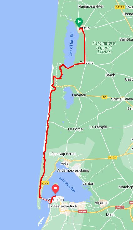We left early from Hourtin as we had 80kms to do and make it to the ferry over to Arcachon by 3:30pm as we were meeting Erika around 5pm. She flew to Bordeaux from London today then took the train to Arcachon.