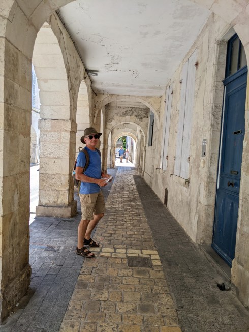 The entrance to the harbour is dominated by 3 towers, one of which is a lighthouse. There are also many arcaded streets so that the vendors could sell their goods during bad weather. We learned there is a strong connection to Quebec (New France) here due to being an eastern port of Europe with much trade back and forth (furs, wine, salt and slaves from Africa-yikes!) Samuel de Champlain was born here in 1567 and sailed from this area in the early 1600’s to establish New France. He died in Quebec. One of the streets in La Rochelle is cobbled with stones from Quebec. The stones were used as ballast on the ships sailing back to France.