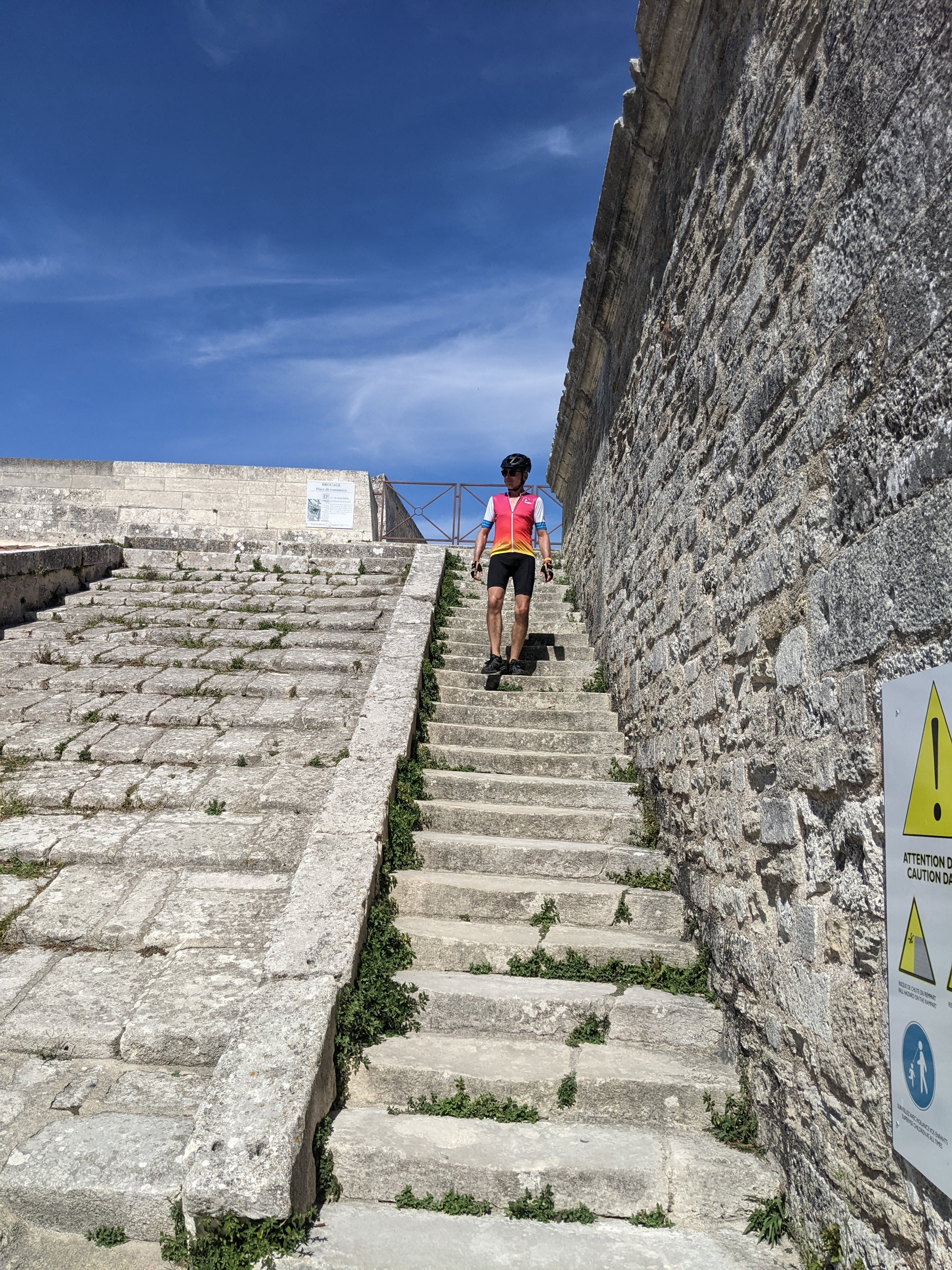 We rode through a lovely little town with an ancient fort named Remparts de Brouage. It is one of many in France with a classification as a Beaux Village. It wasn’t a planned stop, just happened to be on the route, a great place for a rest and refreshment. It’s main street was called “rue de Québec”.