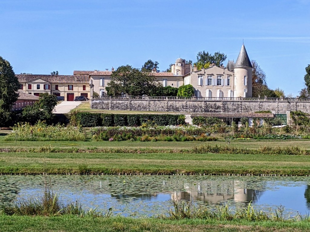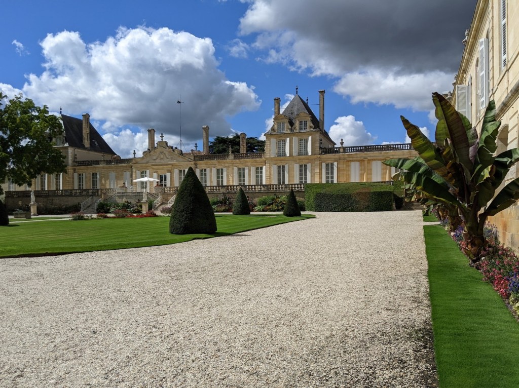 The rest of the ride was spent admiring the chateaux and gardens along the way. I thought it was interesting that the château gardens we saw appeared lush and green yet there has been a drought this year. A few of our hosts have talked about not being able to water their gardens yet here they were clearly watering regularly. What happened to Liberty, Equality and Fraternity? There is clearly much profit in the wine business. (It turns out that the Medoc region has not had it as bad and does not have restrictions).