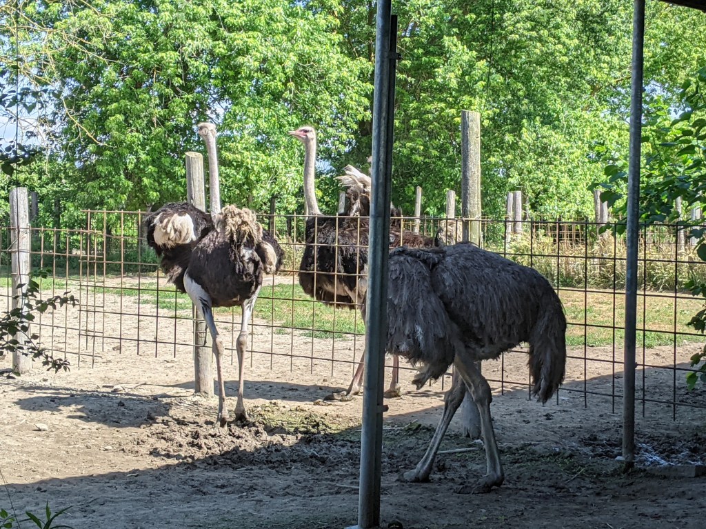 Glad you had a good first day of riding. The ostrich are such interesting looking animals! No food pictures, are you on a diet?
