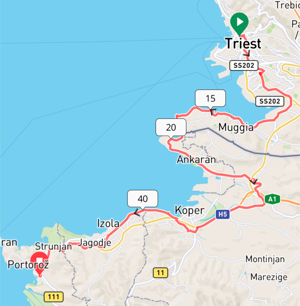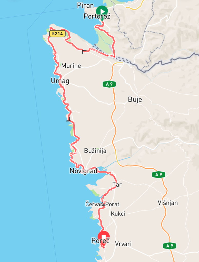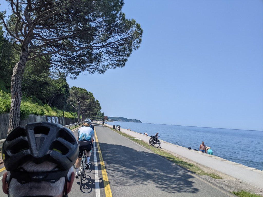 The first leg of this segment was very scenic and primarily coastal taking us through Muggia, Koper and Izola. We crossed into Slovenia about an hour out of Trieste and noticed almost immediately that there are many bike lanes and many cycle tourists using them. It appears to be a popular area for cycle holidays although most people aren’t touring like us, just staying put and going for rides in the area.