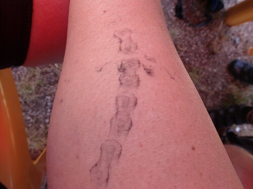 Traditionally Tara receives a temporary chain tattoo every day. This one shows particularly excellent link definition