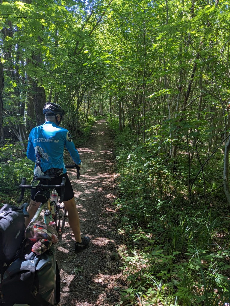 Our tire problems have turned into a saga, now we’ve had 6 rear flats when usually we have 1 or 2 in the whole trip. Finally with the latest flat we were able to find the culprit, a small sharp piece of shell or rock that had managed to embed itself in and then through the tire, piercing the tube repeatedly. It was so small that we hadn’t noticed it, but also hadn’t been in a situation to be able to look very closely at the tire either (pouring rain in the forest). George has now patched the inside of the tire where that occurred, and two similar ‘breakthroughs’ so hopefully that is the end of it. We are not impressed with our new ‘gravel’ tires’ puncture proof-ness, and for now we will stick with asphalt if we can.