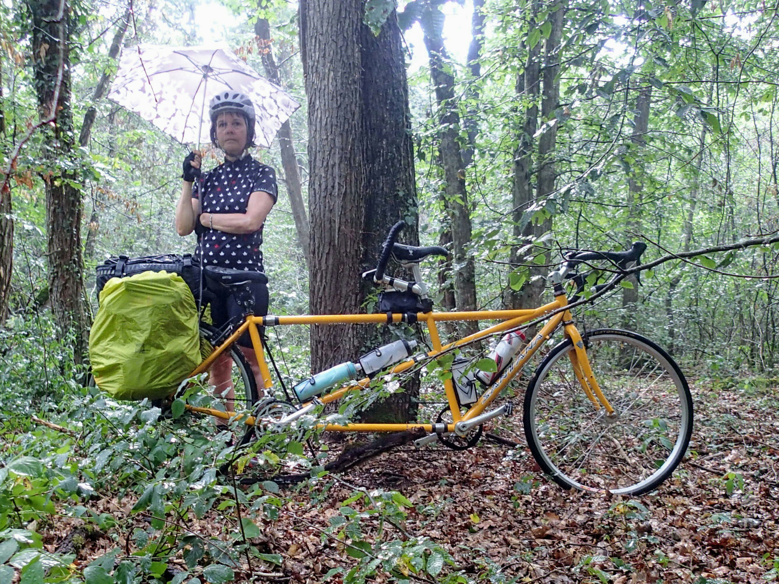 After the fourty minute ferry ride we headed to Gibsons for a short stop and then on the main coastal highway to Davis Bay , only another 20km. The road was ok, a bit busy but there is a shoulder on the highway. We also have a very flashy and flashing red light on the back of the bike to remind drivers to avoid hitting us. They behaved.